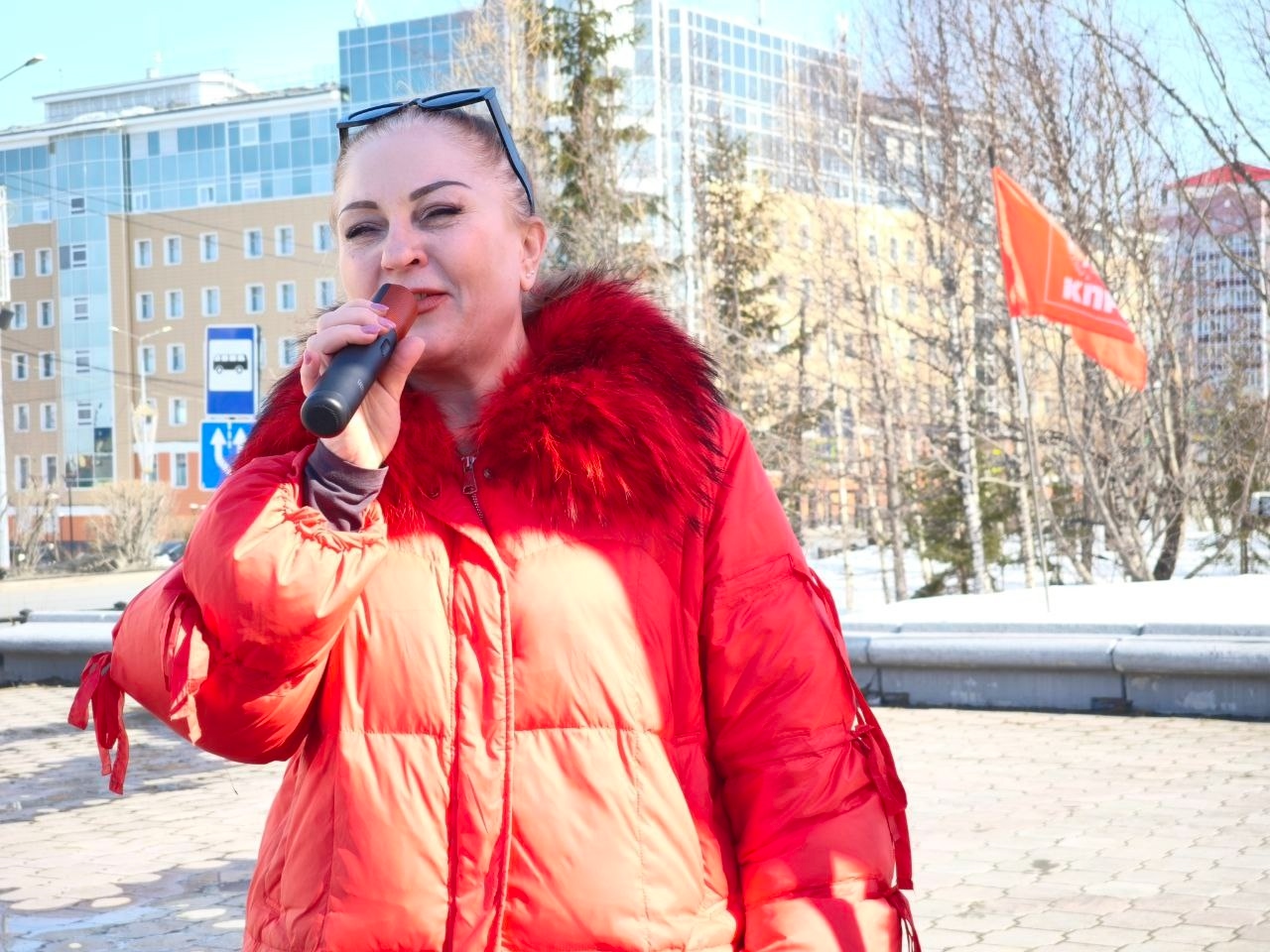 Первый секретарь Салехардского горкома КПРФ Людмила Журавлева зачитала резолюцию митинга. Она была принята единогласно.